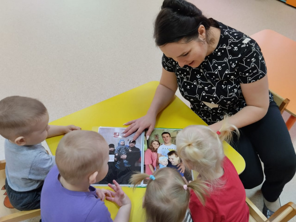 Во второй группе раннего возраста «Солнышко», дети в доступной и увлекательной форме узнали о том, что такое семья; о членах семьи – бабушке и дедушке, маме и папе, сестрах и братьях, познакомились с семейными традициями. После беседы ребята рассматривали фотоальбом семей группы «Солнышко». Называли своих родных и близких. Повторили пальчиковую игру «Семья».