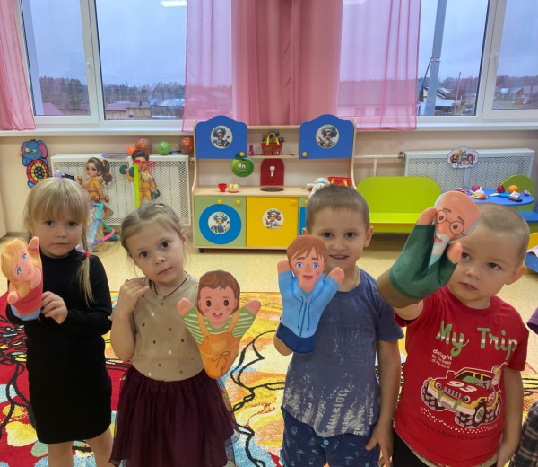В младшей группе «Улыбка» в начале беседы имел место сюрпризный момент: к детям пришли игрушки: Петя со своей семьёй.
