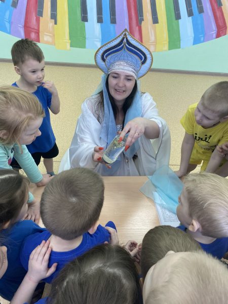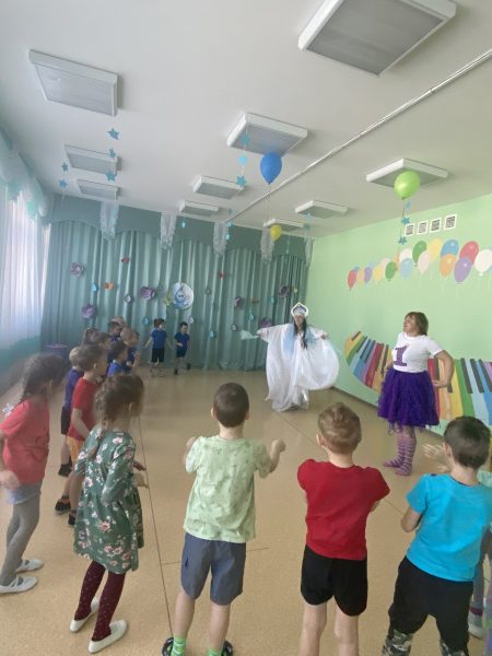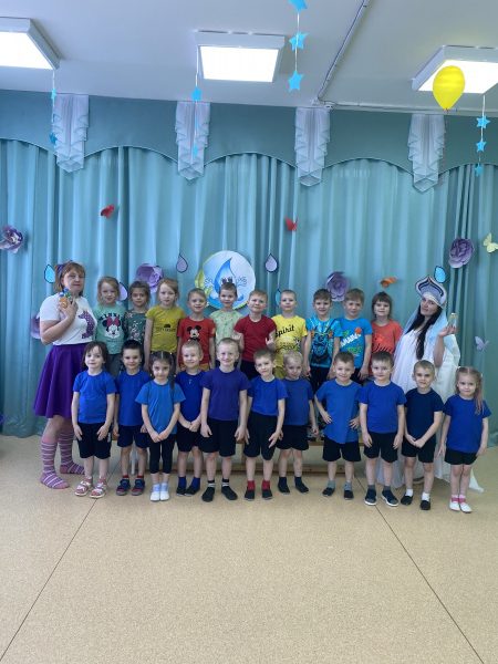 В гости к детям пришла Царица Вода и Злючка–грязнучка. Под веселую музыку дети играли в игры с Царицей Водой, проводили эксперименты с водой, проходили испытания и участвовали в конкурсах.