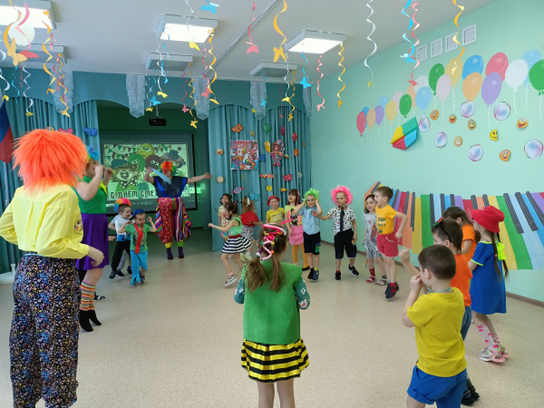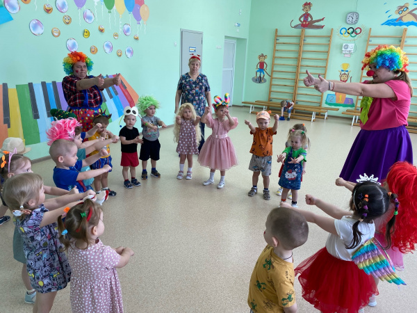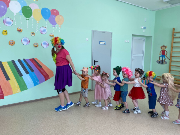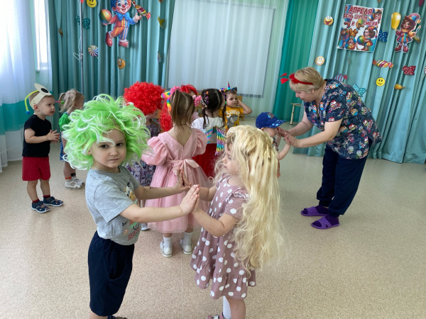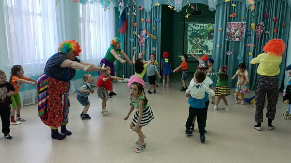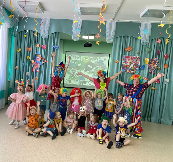 В первоапрельский день, ребята всех возрастных групп попали на музыкальное развлечение «Веселые игры с клоунами Тимошей и Веснушкой». Целью праздника было создание положительного эмоционального настроя, ощущение радости и веселья, сохранение психологического здоровья.