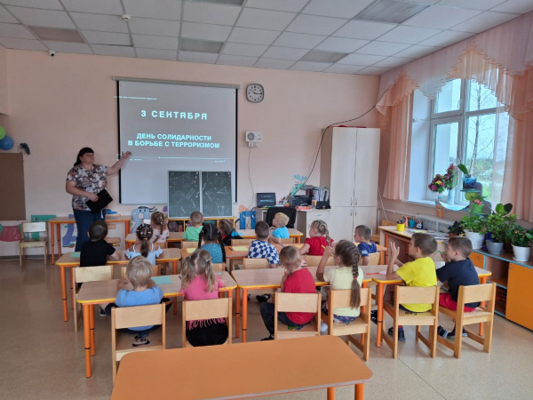 Наш детский сад не остался в стороне. В старшей группе «Светлячок» прошло мероприятие, посвящённое Дню солидарности в борьбе с терроризмом. Воспитатель провела познавательную беседу с детьми на тему «Терроризм и личная безопасность»