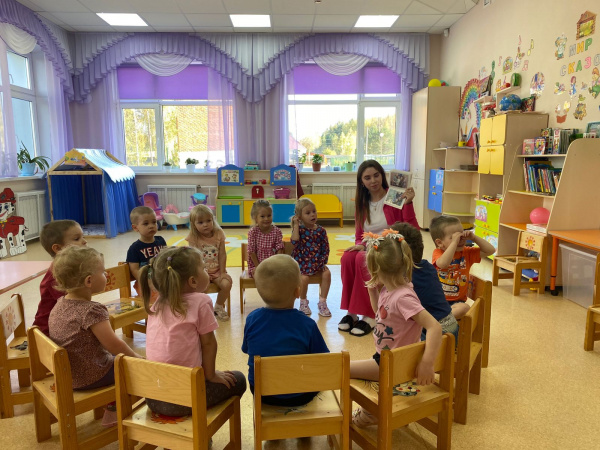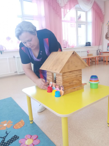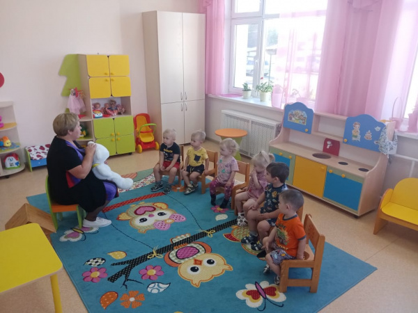 С детьми группы «Солнышко» проводилась беседа по теме «Наша дружная семья» в форме сказки. В гости к детям приходил медвежонок Топтышка. Он гулял по лесу и на опушке увидел дом, в котором жила дружная семья. При помощи пальчикового театра «Семья» дети при помощи наводящих вопросов воспитателя называют всех членов этой семьи (девочка, её мама и папа, бабушка и дедушка). После чего медвежонок спрашивал у детей о их членах семьи, о том с кем они живут. Кто-то называл маму и папу, кто-то говорил про брата и сестру. После чего Топтышка попрощался с детьми и отправился обратно в лес к своим родителям, пожелав детям хорошего настроения.
