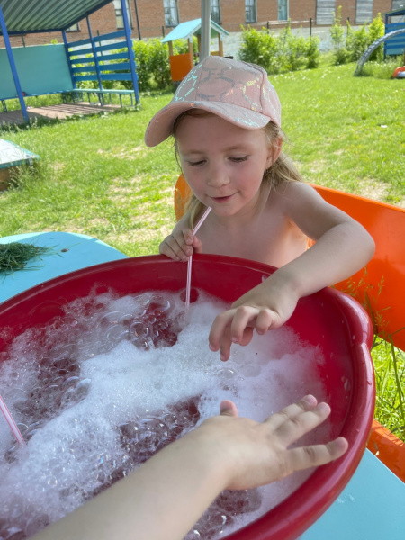 Цель: Познакомить с тем, что при попадании воздуха в каплю мыльной воды образуется пузырь, затем пена;