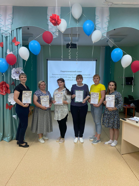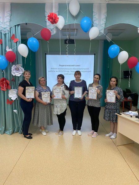 Вот и завершился 2022 — 2023 учебный год, насыщенный делами, событиями, запомнившийся нам яркими праздниками и непростыми буднями. 15 июня 2023 г. прошел итоговый педагогический совет, отчет работы педагогического коллектива детского сада МБДОУ д/с «Светлячок» за учебный год. Открыла педсовет Наталья Николаевна Васильчук, заведующая поздравила коллектив с успешным завершением учебного года и вручила благодарности педагогам ДОУ.