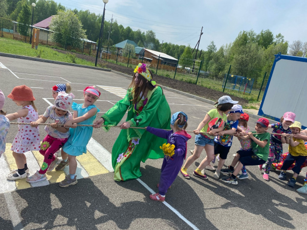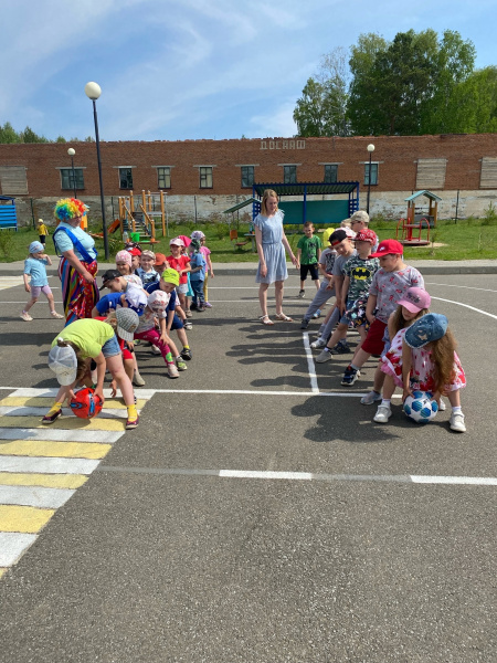 На прогулочной площадке ребят ожидало праздничное развлечение. К детям пришли в гости веселые клоуны и красавица-Лето, которые играли в весёлые игры и эстафеты, танцевали и подарили детям хорошее настроение. Было приятно видеть радостные детские лица и слышать весёлый детский смех. Праздник продолжился запуском мыльных пузырей.