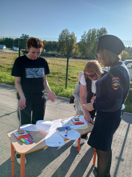 Галина Александровна совместно с юными помощниками напомнила родителям, что соблюдение Правил дорожного движения делает безопасным перемещение по дорогам, оберегая жизни и здоровье всех участников дорожного движения. Также дети вручили родителям каждому ромашку безопасности.