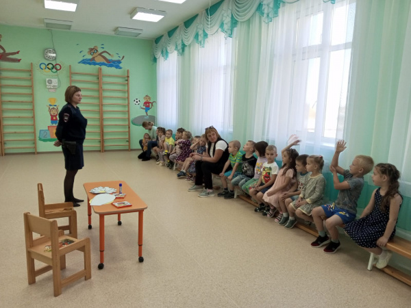 В рамках проведения недели безопасности дорожного движения 14 сентября 2023 года в нашем детском саду с ребятами старших групп была проведена встреча с инспектором по пропаганде и дорожного движения ГИБДД лейтенантом полиции Жаглиной Г.А.
