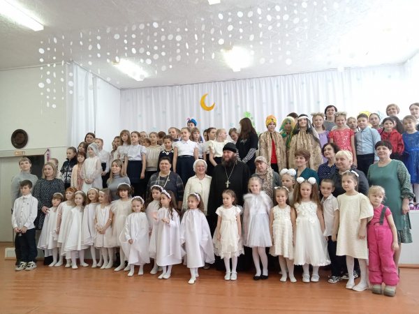 В гости на праздник был приглашен настоятеля Храма Преображения Господня иерей Иоанн. Он по-простому объяснил ребятам, что в дни Рождественские нужно совершать добрые дела и помогать людям, рассказал детям, что Рождество – это не просто праздник с подарками, а время, когда мы можем показать всю нашу любовь своим родным, друзьям и близким.