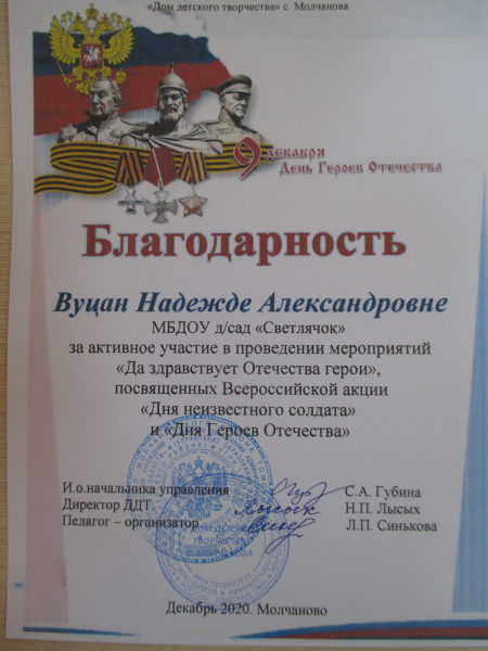 Благодарность»ДДТ» с.Молчаново, 2020г. (смотреть)