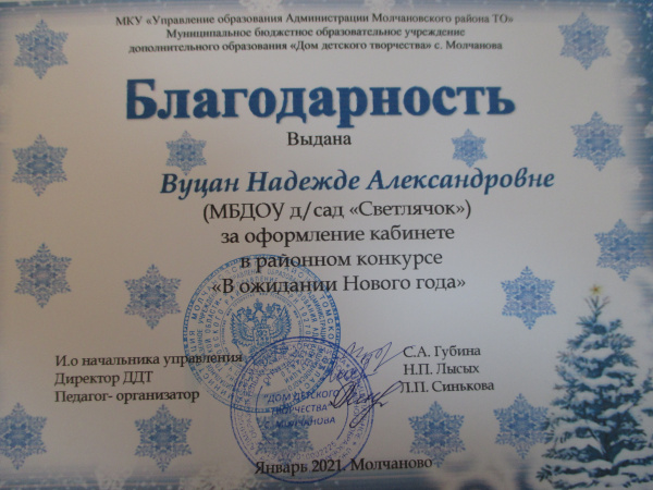 Благодарность»ДДТ» с.Молчаново, 2021г.(смотреть)