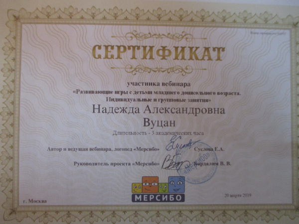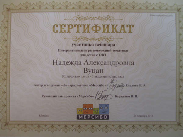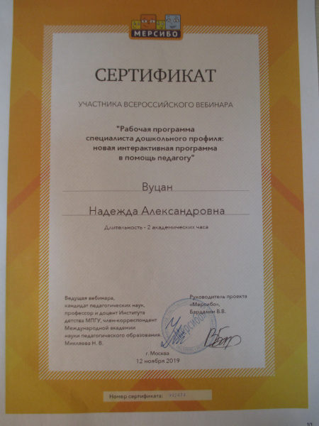 Сертификат участника вебинара г.Москва, проект «Версибо» Сертификат 4