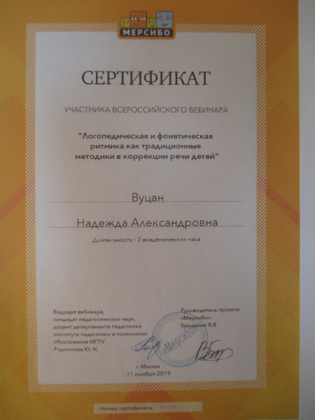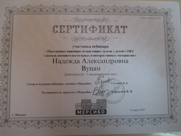Сертификат участника вебинара г.Москва, проект «Версибо»