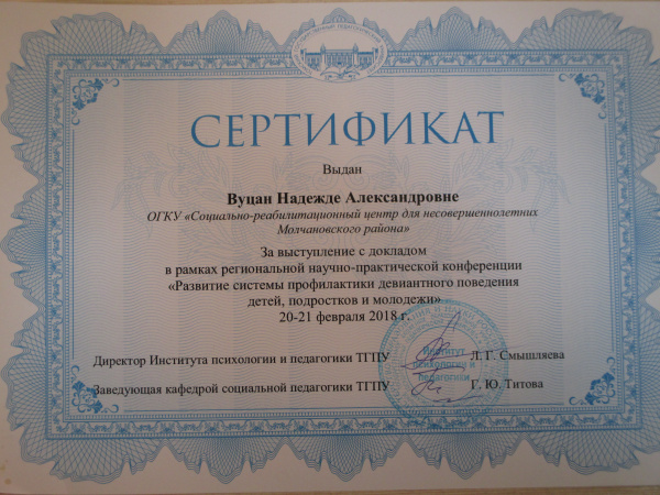 ТОИПКРО, региональный сертификат за выступление в научно-практической конференции, 2018г.(смотреть)