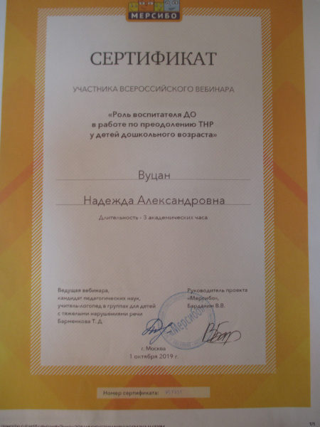 Сертификат участника вебинара г.Москва, проект «Версибо» Сертификат 1