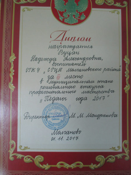Диплом ОГКУ «»СРЦН Молчановского района», 2017 г.(смотреть)