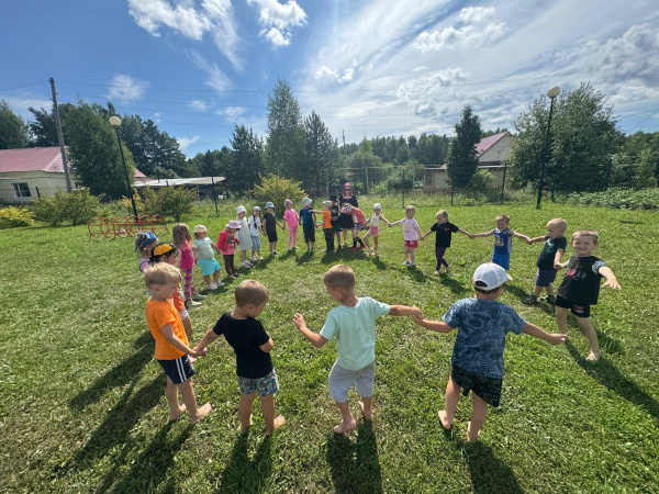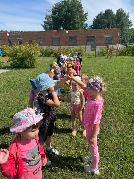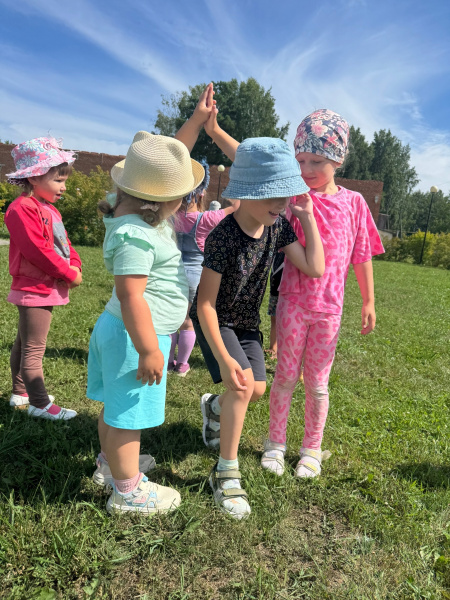 В Старших группах «Светлячок» и «Радуга» ребята поиграли в игры «Ручеек», «Платочек», «Жмурки», «Булавочка» и многие другие.