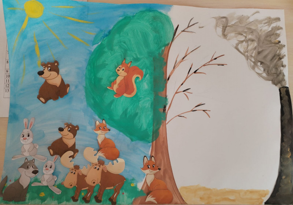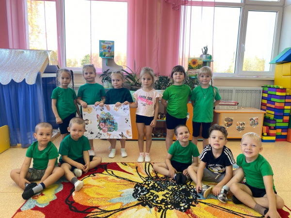 В младшей группе дошкольники побеседовали о животных (кто живёт в лесу рядом с нами, каких животных осталось очень мало на Земле), о том, что их нужно защищать, многим нужно помогать (кормушки для птиц, не мусорить в лесу, на реке). Для плаката была выбрана тема: «Безопасность животных в наших руках».