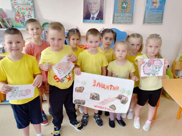 С ребятами старше – подготовительной группы «Светлячок» была проведена тематическая беседа «Береги животных». На занятии ребятам было рассказано о Международном Дне животных. Ребята узнали, что все животные делятся на классы: звери, птицы, рыбы, насекомые; бывают дикими и домашними и т. д. Побеседовали о редких видах животных, о видах, находившихся под угрозой исчезновения. В ходе занятия дети отгадывали загадки, рассказывали о своих любимых домашних питомцах. Обсудили, как важно заботиться о животных и быть ответственными по отношению к ним. В завершении дня ребята совместно с воспитателем изготовили экологический проект – плакат «Защитим животных».