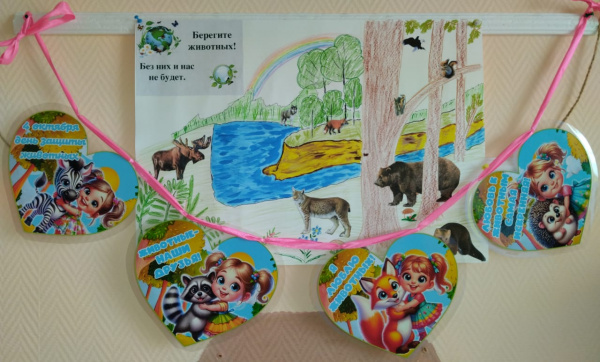 Во второй группе раннего возраста «Солнышко» были проведены различные мероприятия, чтобы научить детей заботиться о животных. Воспитатели рассказали детям о том, как важно кормить и ухаживать за своими домашними питомцами. Как важно не засорять леса и не губить диких животных. Вместе с педагогом ребята сделали плакат «Берегите животных! Без них и нас не будет!». Плакат повесили в приёмной, чтобы родители помнили, в суете своих дел, и о братьях наших меньших.