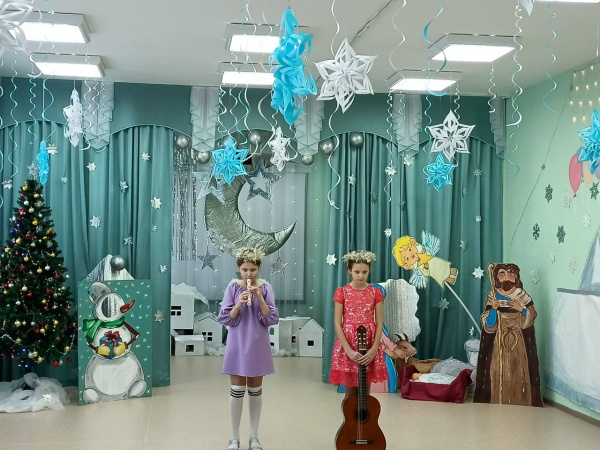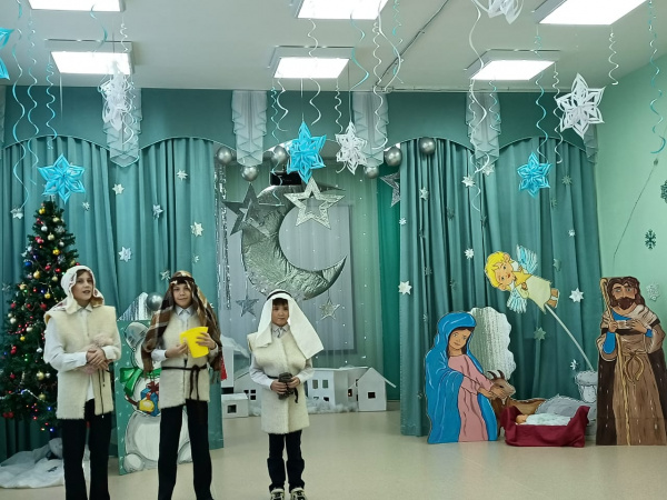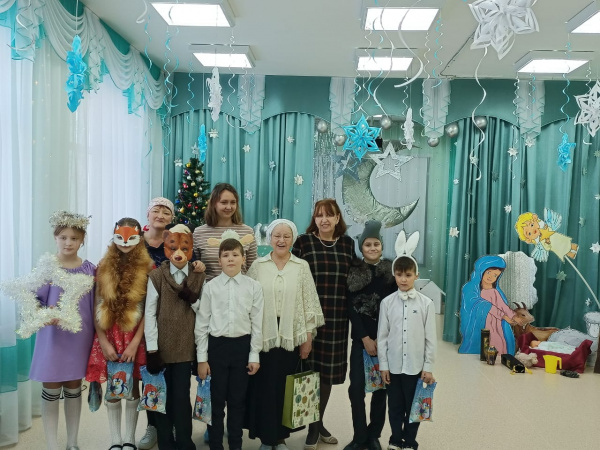 Именно 18 января произошла встреча наших воспитанников с руководителей воскресной школы при Храме Преображения Господня Майковой Галиной Павловной и ее воспитанниками. Ребята показали три сцены: Ангела и пастухов, Звёзды и волхвов- мудрецов, сценку на лесной полянке! Звучала флейта, гитара, которые помогли нашим участникам и гостям радовать Новорожденного Господа и радовать сердца! Уходили с зажженным в сердцах огоньком Любви к Богу, к миру, друг другу! Слава Богу за все!